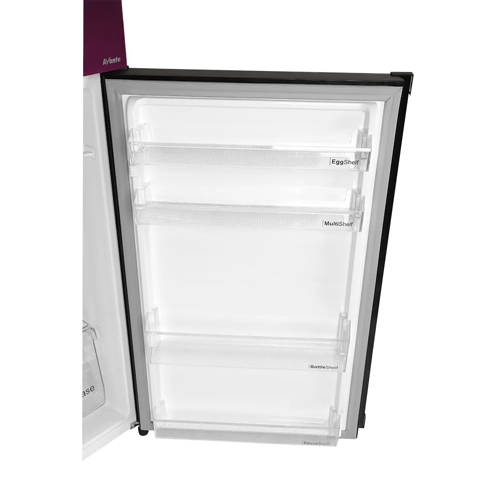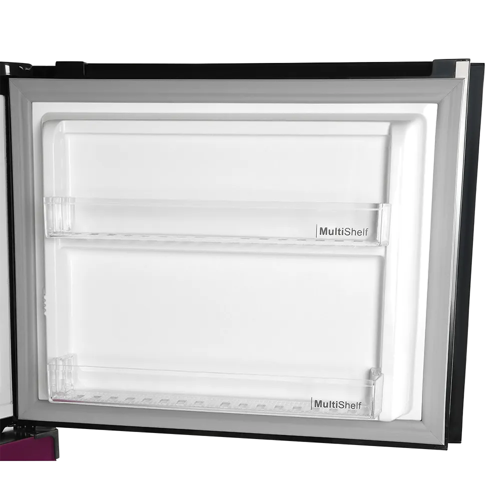REF 9178LF Avante Diamond Purple Double Door Refrigerator is built with advanced Hybrid Cooling Technology to ensure long lasting freshness and efficient performance. Its stylish Diamond Purple Glass Finish adds a premium and modern touch to any kitchen interior. The spacious Top Freezer Design provides organized storage with optimal cooling control. Ideal for families looking for an energy efficient refrigerator with reliable performance and elegant design.