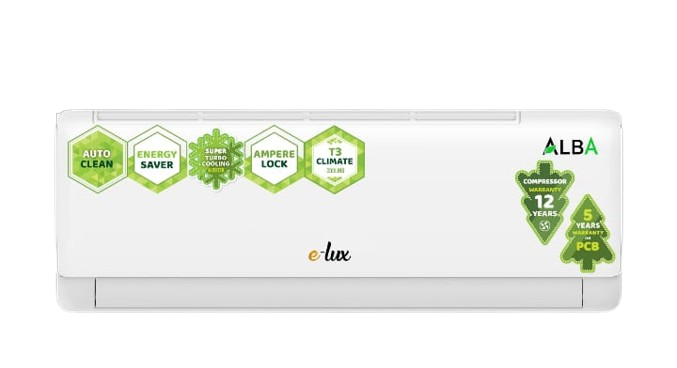 E‑Lux MEA‑618 AL is a high-performance 1.5 Ton split inverter air conditioner engineered to deliver fast, efficient, and stable cooling even under demanding environmental conditions. Equipped with advanced features such as Super Turbo Cooling, T3 tropical technology, Ampere Lock, and an Energy Saver mode, this AC is designed for hot climates with fluctuating electricity supply. The model typically comes with a 10-year compressor warranty and 5-year PCB (electronic board) warranty, promising durable and reliable operation over years of use.