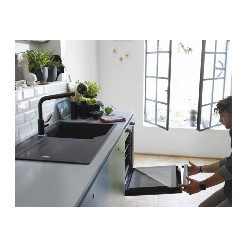 The FRANKE FSM 86 HE XS Multifunction Electric Oven, featuring Satin Stainless Steel / Black Crystal Finish from the Smart Collection, boasts a capacity of 71 liters with hydrolytic cleaning. It is an advanced choice for your kitchen needs.