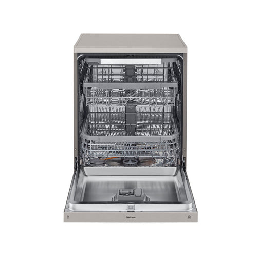 The LG QuadWash™ Steam Dishwasher - DFB425FP is a high-performance dishwasher designed for efficiency and convenience. With innovative QuadWash™ technology, TrueSteam™ for superior cleaning, and SmartThinQ™ connectivity, this dishwasher meets the demands of modern kitchens. The sleek stainless steel design complements any decor, and the 14-place setting capacity allows you to wash large loads with ease. Whether you're dealing with heavily soiled cookware or delicate glassware, this dishwasher provides a comprehensive cleaning solution.