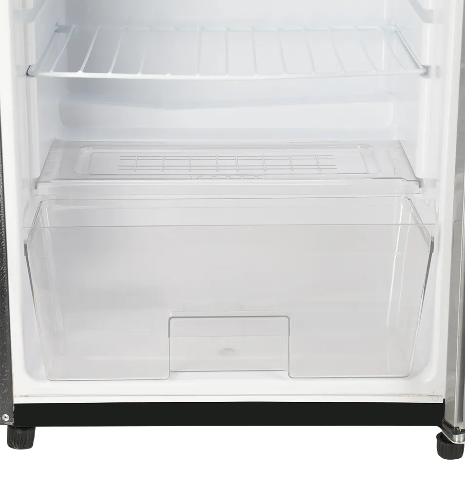 REF 9101 SD R Black and Silver Single Door Refrigerator offers reliable cooling performance with energy efficient operation for daily use. Its stylish black and silver finish refrigerator design enhances the look of modern kitchens, offices, or small spaces. The compact yet spacious interior provides smart storage for food and beverages. A perfect choice for those seeking a budget friendly refrigerator with durable build quality and consistent cooling performance.